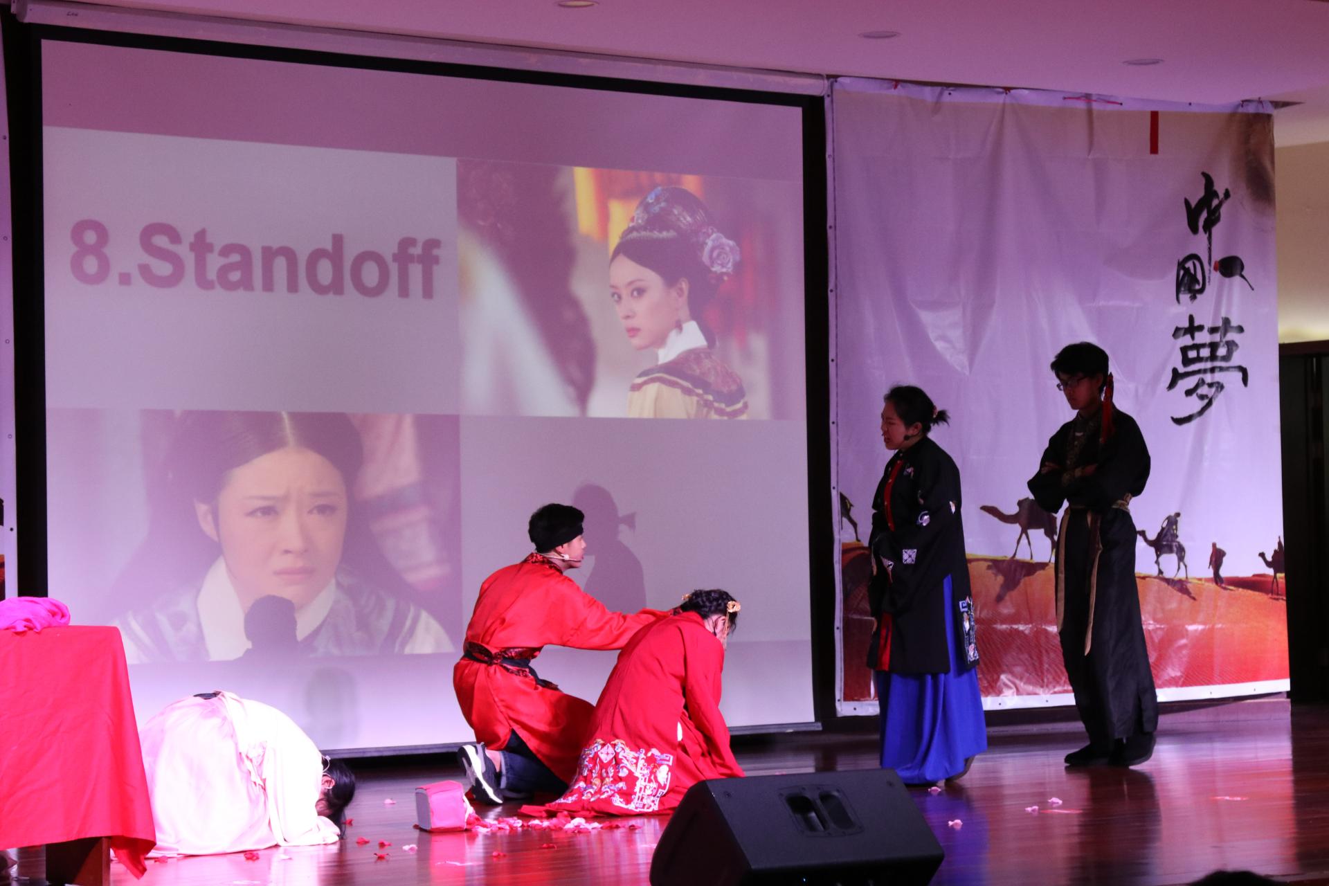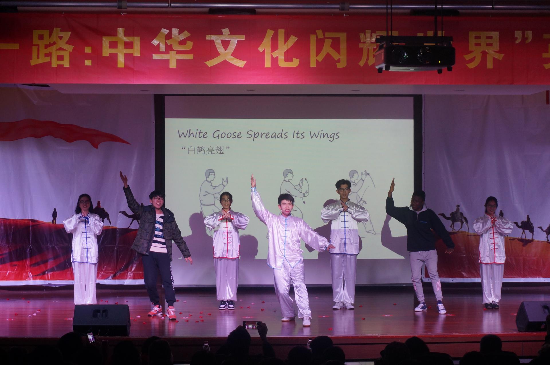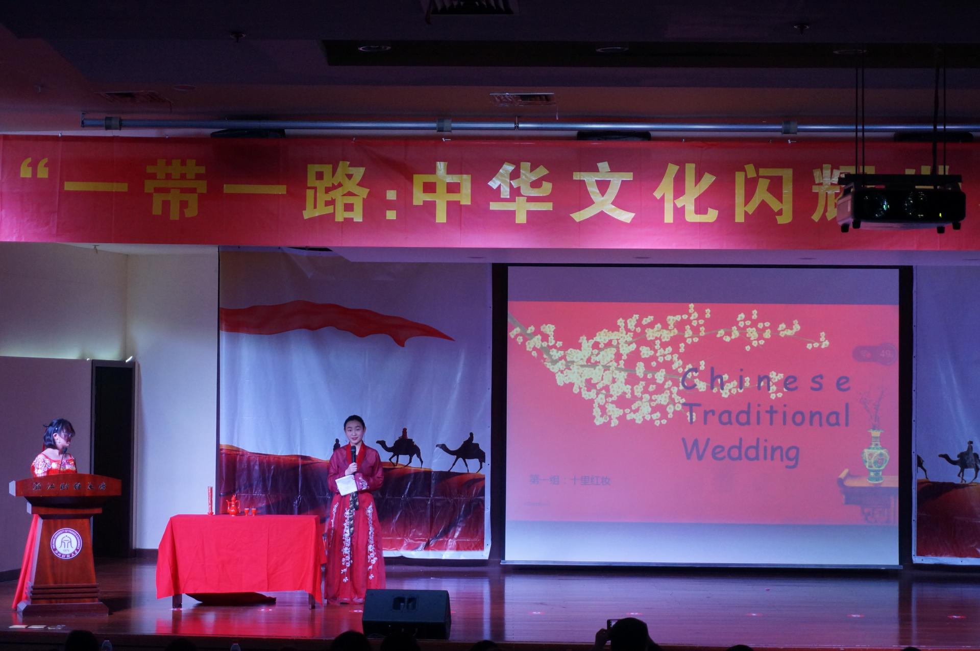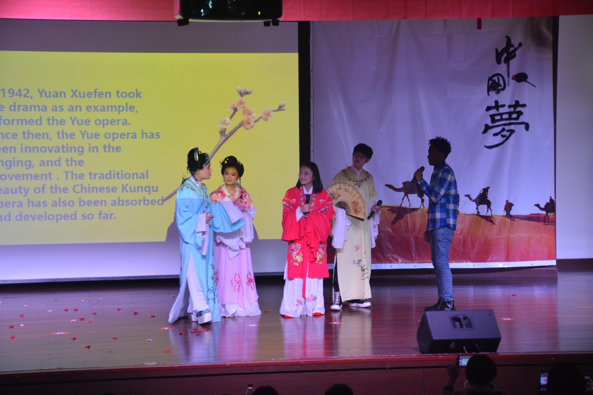 来自全校的8组决赛选手通过PPT展示、话剧表演、乐器演奏、才艺展示各显神通、精心展演,为现场师生带来了一场场赏心悦目的中华文化盛宴:品茗茶艺,养性怡情;十里红妆,新嫁衣裳;明月大江,太极无敌;玩转越剧,小百花开;汉唐清民,服饰变迁;丝绸之路,大国气度;竹笛袅袅,乐中君子;品山海经,奇闻怪志。期间,留学生代表还为现场师生带来了精彩的歌曲联唱。