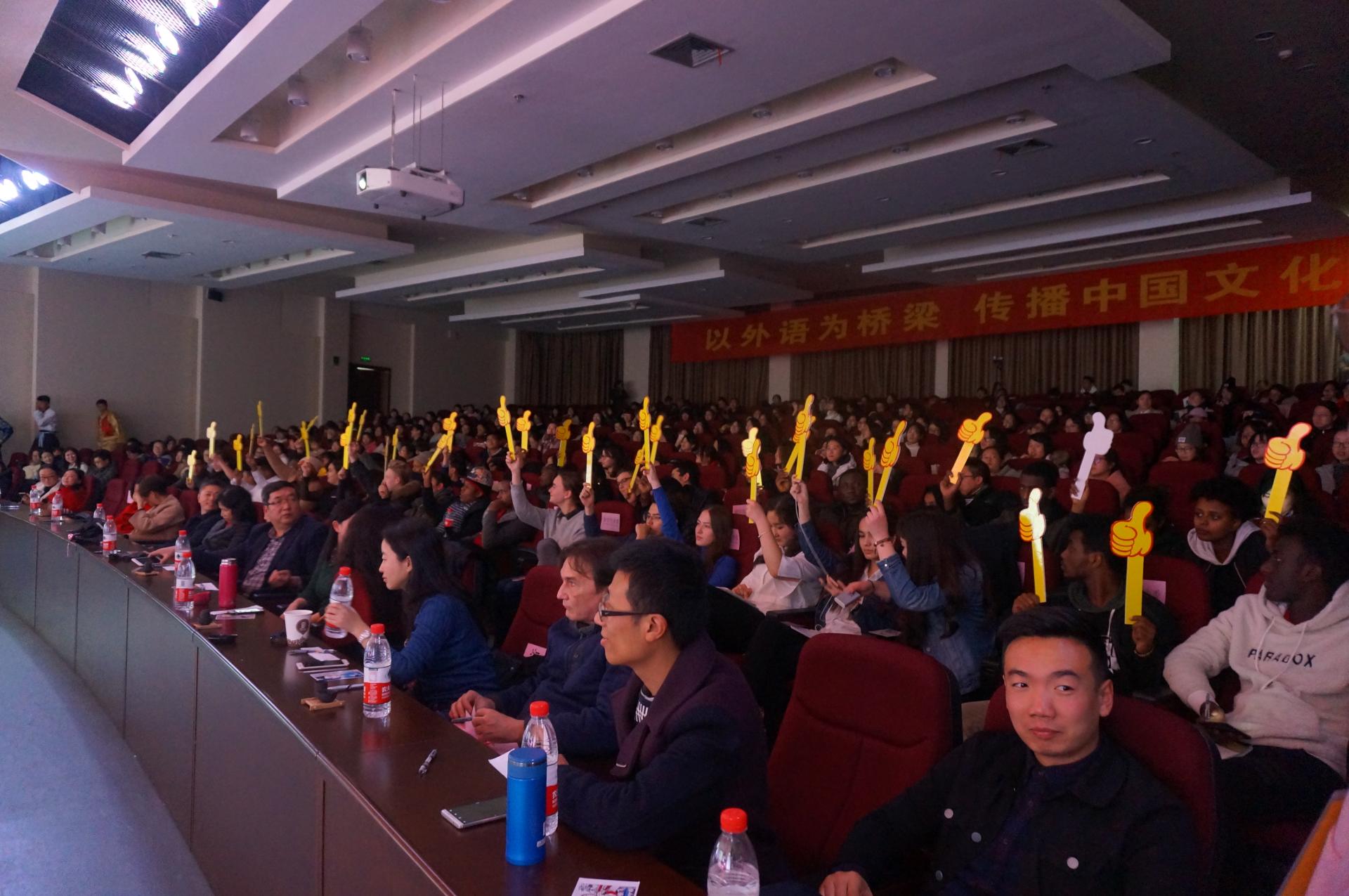 比赛过程中高潮迭起,留学生评委频频举起手中的“大拇指”给分牌“点赞”,观众同学们也时时对精彩的展示爆发出热烈的掌声。