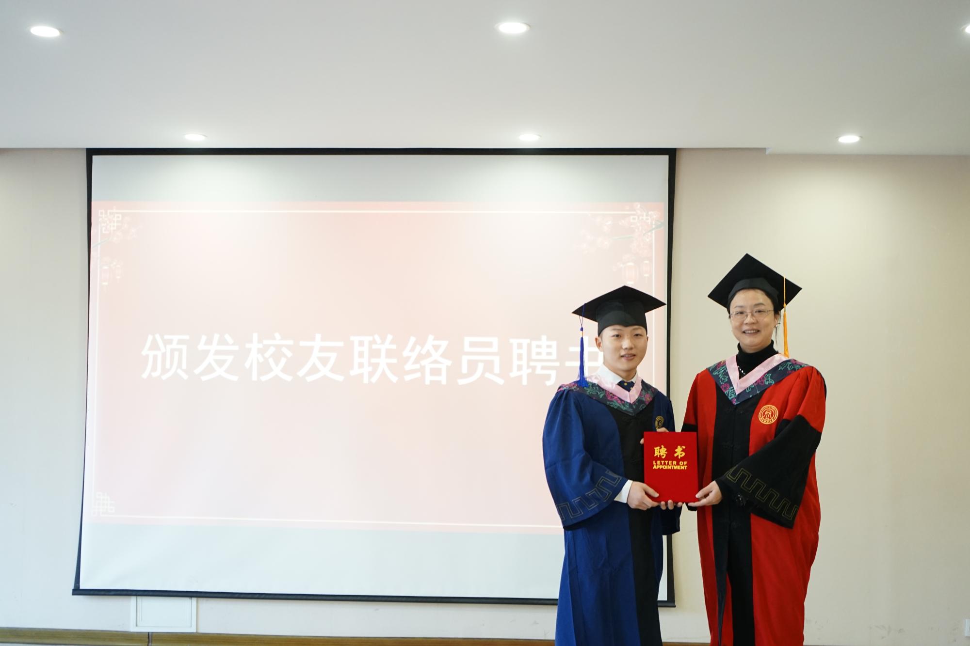 学院党委书记王景向2025届校友联络员程佳威同学颁发聘书,并寄语联络员成为校友间的桥梁,守护学院与校友之间的纽带,推动学院校友工作迈上新台阶,让9001诚信金沙的精神与情谊长存。