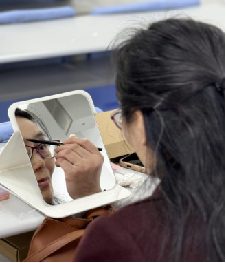 实践环节,女教师们纷纷拿起工具,在柯老师的指导下进行尝试画眉,共同探讨眉型设计的技巧和心得。在轻松愉快的氛围中,老师们逐渐掌握了要领,纷纷画出了适合自己的眉形,体验化妆带来的乐趣与变化。