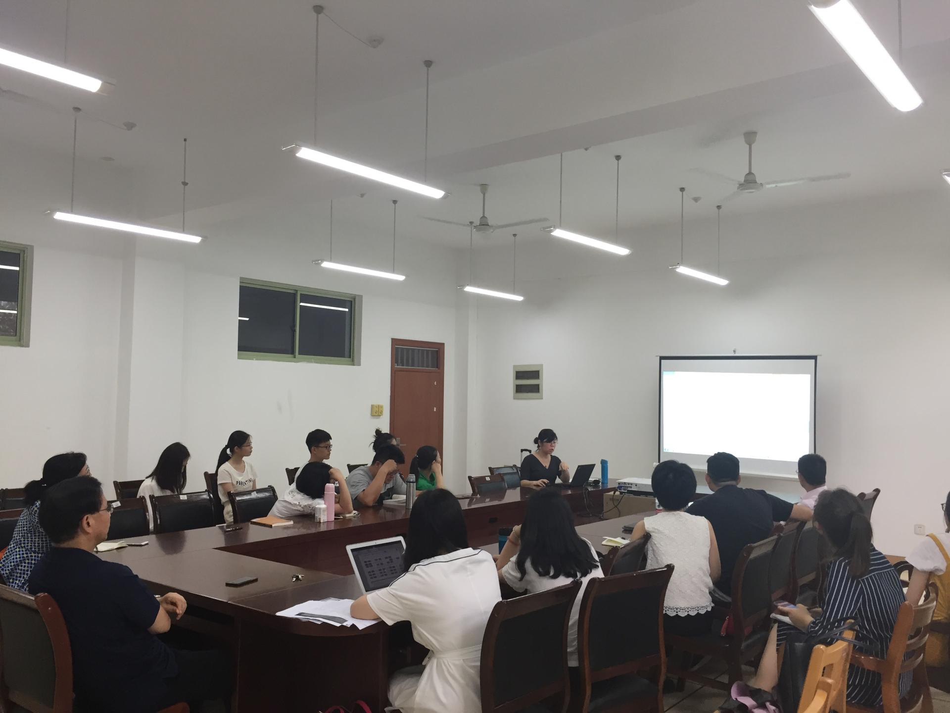 2018年6月19日下午,本学期“语料库与跨学科研究院”的第三场学术活动在学院楼304教室举行,陈珺博士作了题为“国际期刊论文题目的专业度分析”的交流汇报。院长黎昌抱教授,副院长邵斌教授,学院教师及部分研究生参加了此次活动。